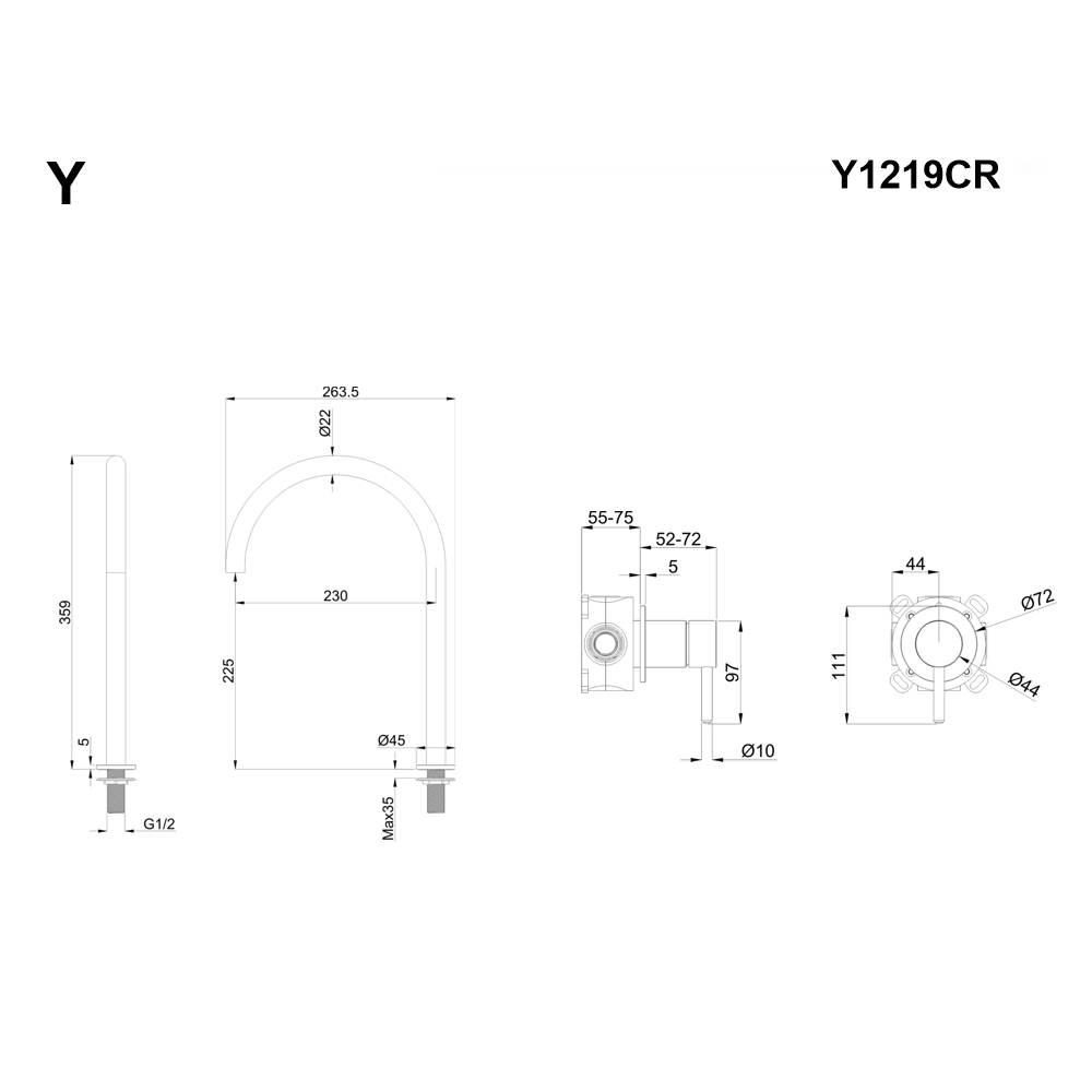 Смеситель Whitecross Y Y1219CR для раковины, встраиваемый, хром - описание, фото, характеристики. Выгодные цены, оперативная доставка по Москве и гарантия качества. Звоните: 8-495-151-27-86