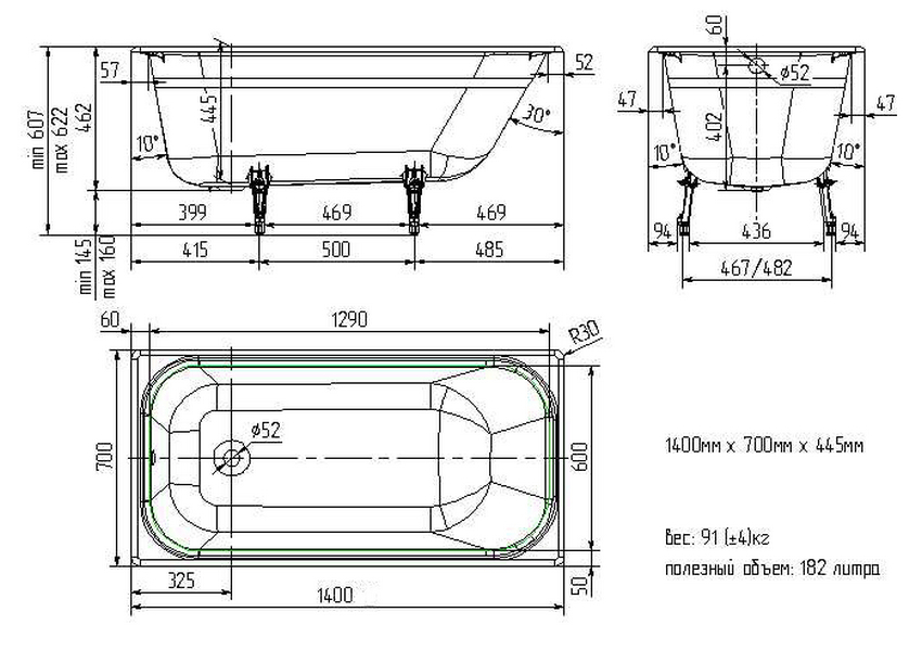 | Группа для ванн | 140 х 70 |